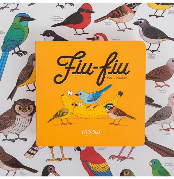 Fiu Fiu: este libro es una invitación a pajarear. A ponerse los binóculos y descubrir las especies de pájaros, pajaritos y pajarracos que habitan tu ciudad o tu región. Aquí están 30 especies que Raeioul y su hija Lucy han visto desde su ventana en Medellín. No pretende ser una guía de campo para observadores de aves ni las ilustraciones son científicas, pero seguramente te ayudará a identificar las aves que encuentres en el árbol más cercano.