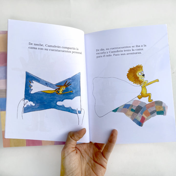Camaleón es un león de cama. Es el más feroz del colchón, es el rey de la sábana hasta que un día vive una aventura en la que tiene que reconocerse a sí mismo.