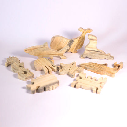 Collection of sea animals in wood x 9