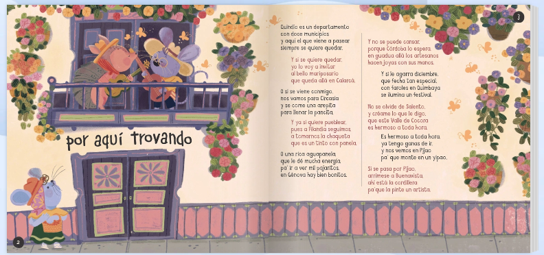 Tendremos mucho que contar a nuestro regreso pues cada página será como asomarse a la vuelta de la esquina en cada pueblo colorido y mágico; o empinarse para ver las aves que se esconden en las guaduas; o sentarse en silencio a escuchar trovas llenas de ingenio y picardía; o treparse (si queda espacio) en un cargadísimo yipao para que nos revele los secretos de cada curva del camino.