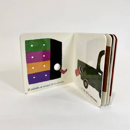 Este es un libro para jugar con los más peques. Está lleno de movimiento, en el que podrás introducir uno de tus deditos para contar lo que le pasa a esas cosas que se escapan. Su formato cabe en cualquier manito y su material de cartón duro es a prueba de mordiscos.
