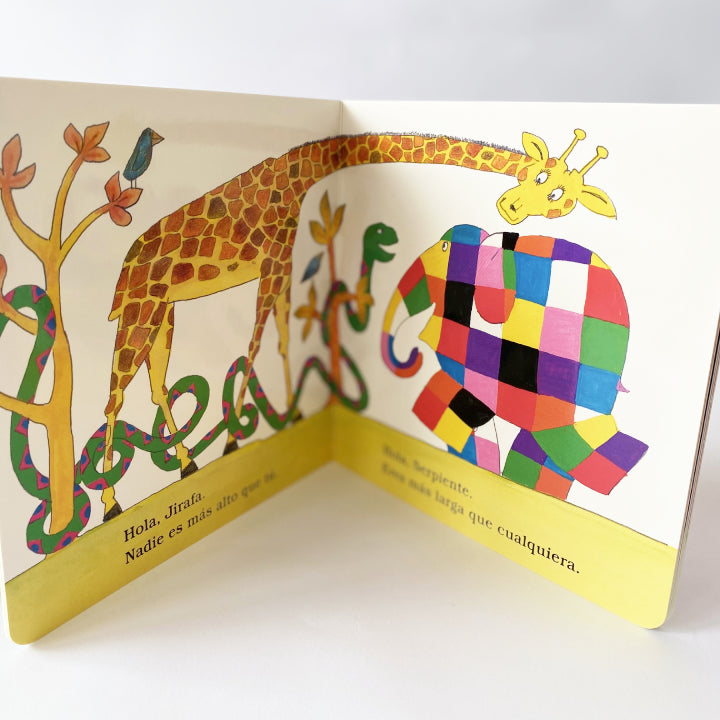 Élmer es nuestro elefante favorito del mundo. Es único y ama serlo. En esta historia nos presenta a sus amigos y sus pecualiridades: la jirafa, la más alta de todas, la serpiente la más larga, la cebra la más rayada. Un divertido libro álbum en cartoné, ideal para los más pequeños, que nos acerca a la diversidad de todos los seres que habitamos este planeta.