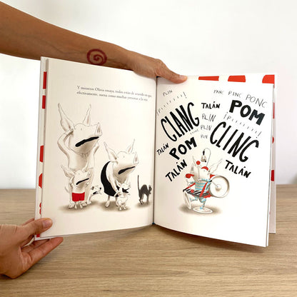 Para los que ya conocen a Olivia esta es otra de sus locas aventuras junto a su familia. Para los que no la conocen se las presentamos: Olivia es una cerdita bien especial, única, curiosa y con una gran imaginación. Anda siempre buscando formas creativas y particulares de vivir la cotidianidad acompañada de una mamá y papá muy amorosos y comprensivos. En esta historia la vemos intentando crear una banda marcial para ir a ver los fuegos artificiales con su familia. Saca todo lo que se le ocurre y arma un gran estruendo. Se imagina haciendo una gran banda mientras sus padres y hermanos esperan con paciencia que experimente la música. Al final lo que Olivia nos regala es la libertad de ser quien realmente es y el respeto de quiénes están a su alrededor acompañándola en sus exploraciones.