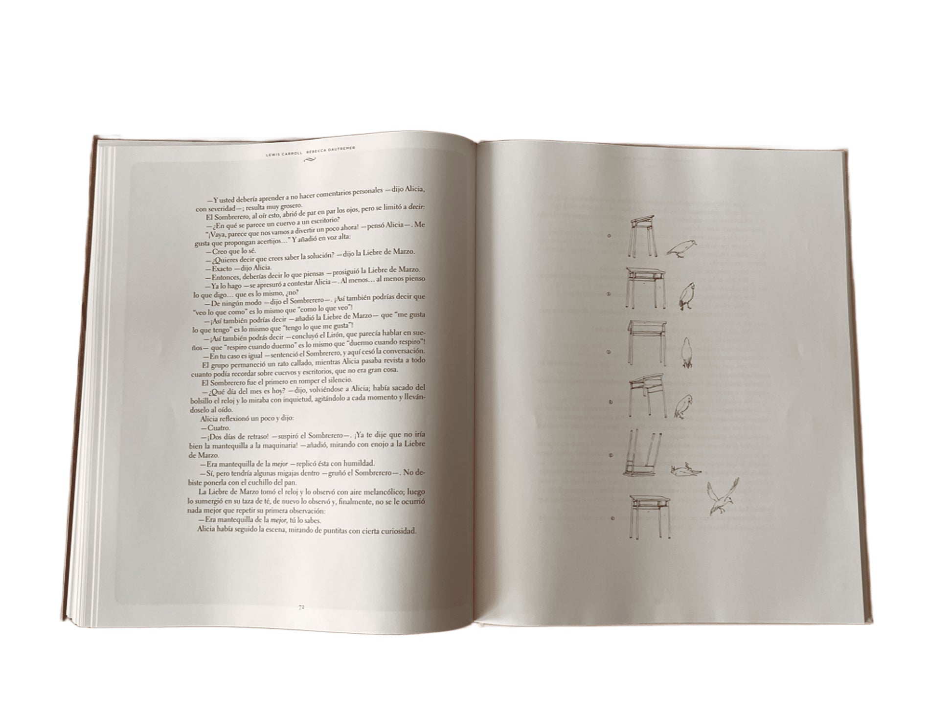 Con Alicia, cada página nos empuja a un mundo donde lo ilógico se convierte en la norma. Este es un texto maravilloso para leer en voz alta y que los adultos tengan la oportunidad de encontrarnos con lo inesperado.
