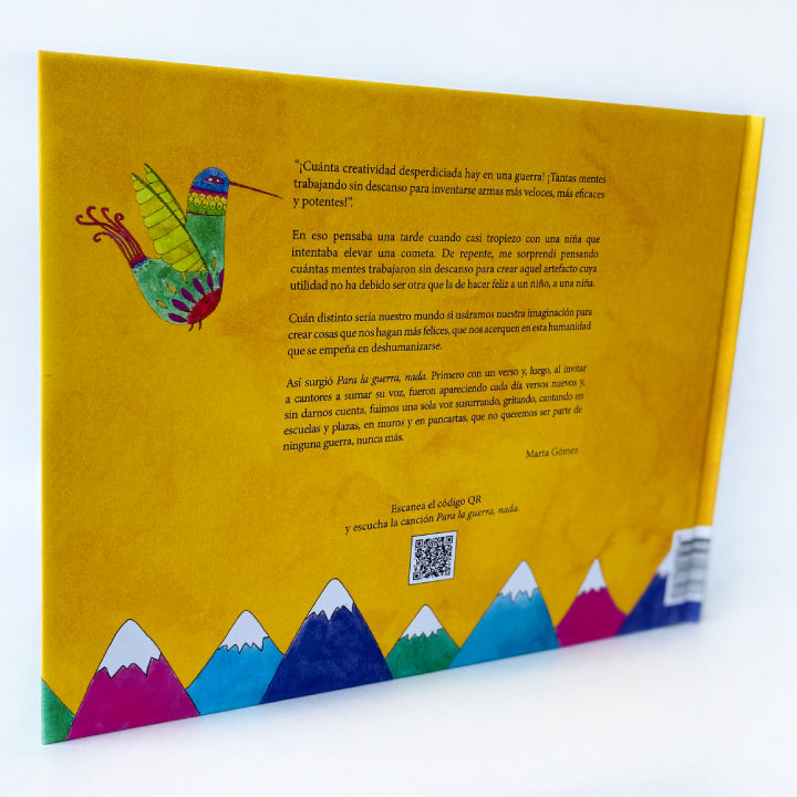 Esta canción que se hizo libro es un mantra para la paz. Muchas veces y en muchos lugares de nuestro país deberíamos cantar y contar este libro canción, para sembrar esta semilla de amor y reconciliación que hace parte de un movimiento por la paz que nació con la canción “Para la guerra, nada”, compuesta por la cantautora colombiana Marta Gómez.